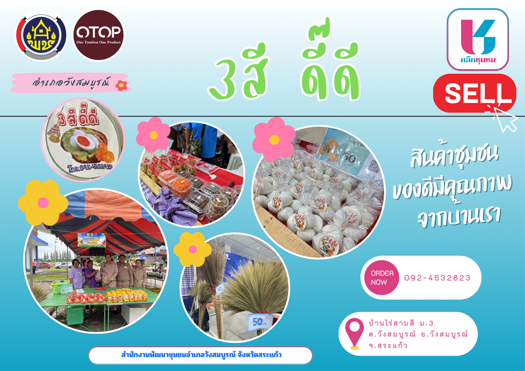 📱พช.วังสมบูรณ์ : เชิญชวนซื้อสินค้า OTOP ของอำเภอวังสมบูรณ์ “กลุ่ม 3 สีดี๊ดี” สินค้าชุมชน เช่น ไม้กวาด ไข่เค็ม กล้วยฉาบ ถั่วกรอบแก้ว เป็นต้น ผ่าน shop ชุมชน ใน Application “Click ชุมชน” อุดหนุนสินค้าคนไทย เพื่อคนไทย อย่าลืมเข้าไปช้อปปิ้งกันเยอะๆนะคะ