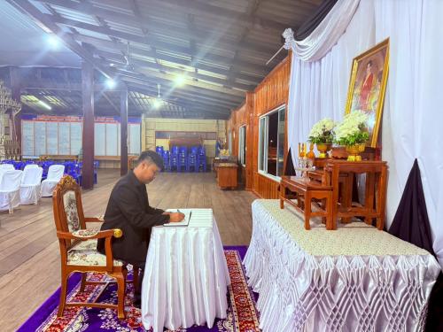 ในการนี้ นางสาวพิมล จันทะสุนี พัฒนาการอำเภอวังสมบูรณ์ พร้อมด้วยเจ้าหน้าที่พัฒนาชุมชนอำเภอวังสมบูรณ์ ได้ร่วมพิธีบำเพ็ญกุศลสวดพระอภิธรรมอุทิศถวายพระราชกุศลในครั้งนี้ ข้าพระพุทธเจ้าทั้งหลายขอน้อมสำนึกในพระมหากรุณาธิคุณ และร่วมลงนามแสดงความอาลัยด้วยความจงรักภักดีอย่างหาที่สุดมิได้