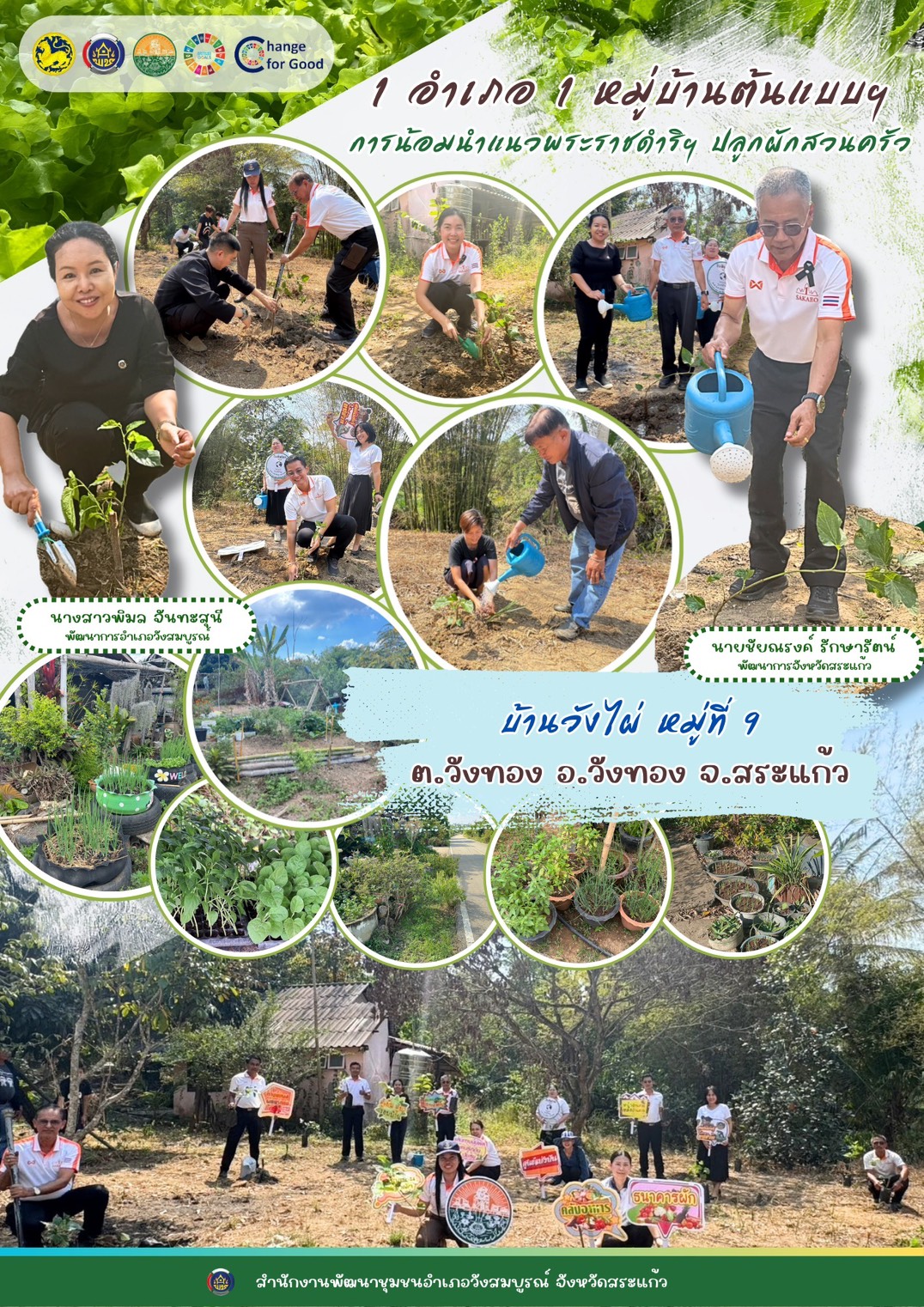 ✨คณะผู้บริหาร สพจ.สระแก้ว ร่วมกับ เครือข่าย OTOP อำเภอวังสมบูรณ์ ร่วมปลูกต้นหม่อน และผักสวนครัว ณ ไร่ดุจตะวัน/ศูนย์เรียนรู้การแปรรูปผลผลิตทางการเกษตรในชุมชนท่องเที่ยวเชิงนิเวศบ้านวังไผ่ หมู่ที่ 9 ตำบลวังทอง เพื่อปรับเปลี่ยนพื้นที่ว่างให้เป็นสวนผัก ผลไม้ สามารถนำไปประกอบอาหารได้ แบ่งปัน และเป็นต้นแบบสร้างความมั่นคงทางด้านอาหารให้กับคนในชุมชนต่อไป พร้อมนี้ ประชาชนบ้านวังไผ่ได้น้อมนำแนวพระราชดำริฯ ปลูกผักสวนครัวบริเวณบ้านด้วย