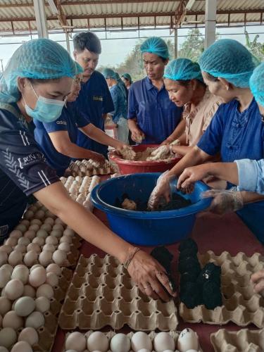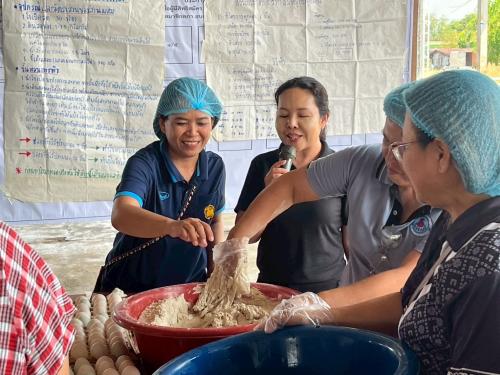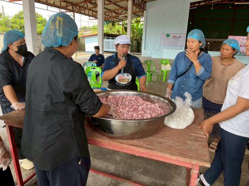 ✨กิจกรรมการฝึกอบรมประกอบด้วยการสาธิตและฝึกปฏิบัติการแปรรูปอาหาร ได้แก่ การทำแหนมกระดูกอ่อน และไข่เค็ม โดยได้รับเกียรติจากนางสาวพรทิพย์ ต้อยกระโทก และนางสาวกชพรรณ พัฒนาภรณ์ จากกลุ่มหมู่ที่ 9 บ้านวังชุมทอง ตำบลวังใหม่ ซึ่งเป็นหมู่บ้านที่ได้รับผลกระทบจากป่าบ้านวังชุมทอง มาเป็นวิทยากรถ่ายทอดความรู้และประสบการณ์แก่ผู้เข้าร่วมโครงการ บรรยากาศการฝึกอบรมเป็นไปด้วยความสนใจและความร่วมมือจากผู้เข้าร่วมทุกคน ส่งผลให้การดำเนินกิจกรรมสำเร็จลุล่วงตามวัตถุประสงค์